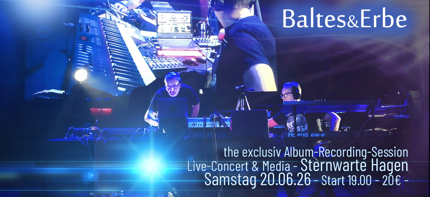 Nach mehrjähirger Albumpause kehren Steve Baltes und Stefan Erbe mit ihrem neuen Ideen auf die Live-Bühne zurück. Fast traditionell eröffnen sie den Kreativ-Prozess mit einem Recording-Konzert-Event in der Hagener Sternwarte, zu dem es wie immer nur ein sehr exklusives Platzkontigent geben wird, den der Hörsaal des westfälischen Observatoriums bietet nur für ca. 55 Besucher Platz.